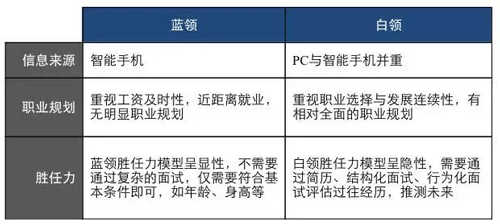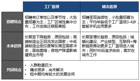 單就藍(lán)領(lǐng)群體的劃分來看,工廠藍(lán)領(lǐng)與城市藍(lán)領(lǐng)的招聘也具備不同的特點(diǎn):
